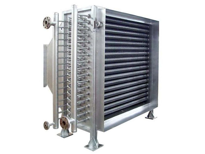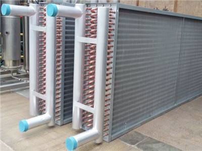 翅片式換熱器因采用機(jī)械繞片,散熱翅片與散熱管接觸面大而緊,傳熱性能良好、穩(wěn)定,空氣通過阻力小,蒸氣或熱水流經(jīng)鋼管管內(nèi),熱量通過緊繞在鋼管上翅片傳給經(jīng)過翅片間的空氣,達(dá)到加熱和冷卻空氣的作用。