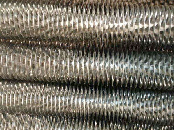 2、由于單金屬翅片管是依靠底部皺褶均勻的站立于基管上,底部皺褶可以對管外空氣起到一定的擾流作用,對強(qiáng)化傳熱有好處。同時(shí),底部皺褶也增加了氣體側(cè)阻力,并在皺褶處易產(chǎn)生積灰等現(xiàn)象,為冷凝液的排除及粉塵的清理增加了難度,選用時(shí)必須注意。