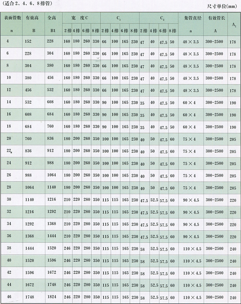 該散熱器有多樣片距(2.5-3.6毫米),現(xiàn)格品種齊全可滿足不同工況和各種組合的需要。