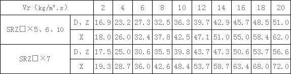 表2、SRZ散熱器在不同空氣重量流速下的空氣通過阻力H(毫米水柱)