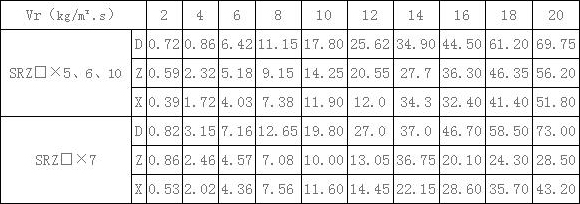 表1、SRZ散熱器熱媒為蒸汽時,在不同空氣重量流速下的傳熱系數(shù)K(kcal/m2.h.℃)