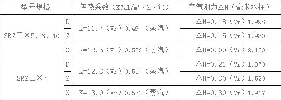 SRZ散熱器技術(shù)參數(shù)